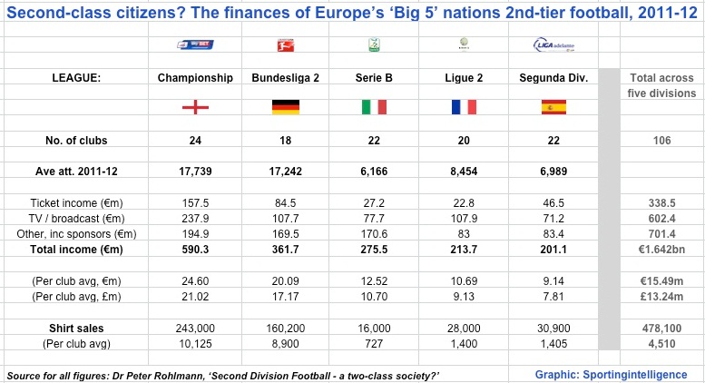 Клубы английского Чемпионшипа продают футболок больше, чем представители второй Бундеслиги, Серии Б, Лиги 2 и Сегунды вместе взятые.