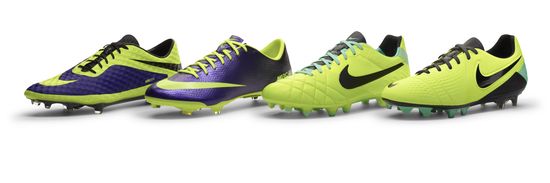 Новая коллекция бутс Hi-Vis от Nike Football, в которую вошли Nike Hypervenom, Mercurial IX, CTR360 и Tiempo IV, создана для того, чтобы футболисты были заметны на поле в условиях плохой видимости.