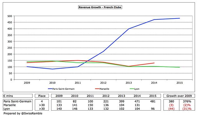 ПСЖ остается единственным французским клубом в Лиге денег этого года, взобравшись теперь уже на четвертое место. Марсель и Лион раньше были завсегдатаями топ-20 (16-е и 17-е место в 2012 году), но при отсутствии роста доходов они выпали из рейтинга.