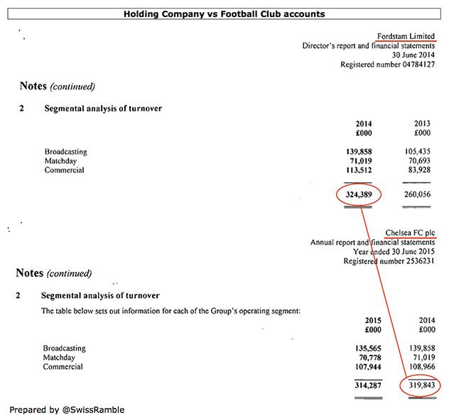 Футбол — простая игра, но клубы все больше и больше связываются со сложными корпорациями. Например, Открытая публичная компания с ограниченной ответственностью "Челси", принадлежащая Fordstam Limited, владеет футбольным клубом Челси, и их доходы могут отличаться.
