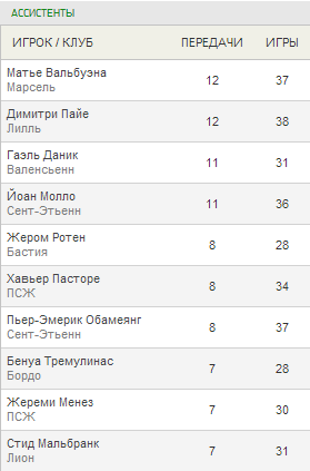 - Лучшая оборона: ПСЖ (23), Сент-Этьенн (32), Бордо (34)