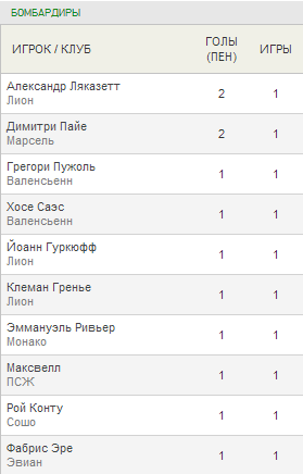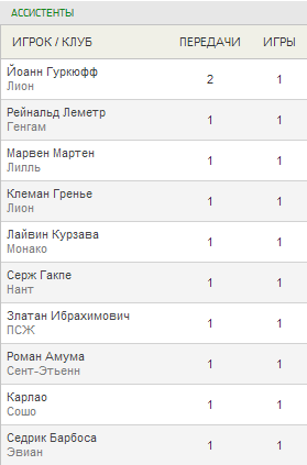 - Лучшая атака: Лион (4), Марсель (3), Валенсьенн (3)