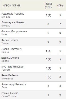 - Лучшая атака: Монако (16), ПСЖ (14), Нант (14), Монпелье (14)