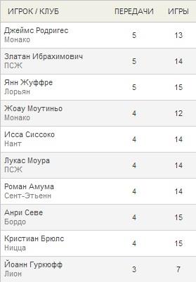 - Лучшая оборона: Лилль (4), ПСЖ (8), Монако (11)