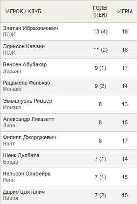Командная статистика- Лучшая атака: ПСЖ (39), Монако (28), Сент-Этьенн (24), Лион (24)