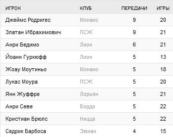 - Лучшая атака: ПСЖ (52), Монако (36), Лион (35)