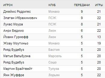 - Лучшая атака: ПСЖ (54), Монако (38), Лион (35)