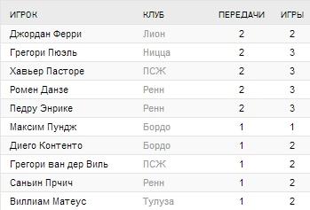 - Лучшая атака: Бордо (8), Ренн (6), Сент-Этьенн (5), Кан (5)