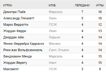 Лучшая атака: Марсель (32), ПСЖ (29), Лион (27)