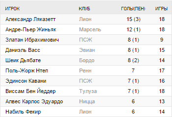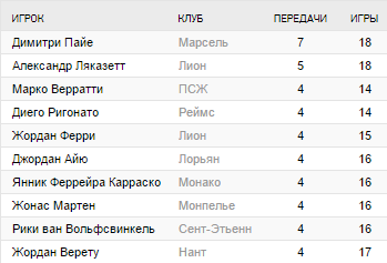 Лучшая атака: Марсель (36), Лион (35), ПСЖ (32)