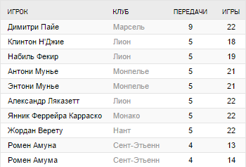 Лучшая оборона: Сент-Этьенн (15), Лион (17), Монако (18)