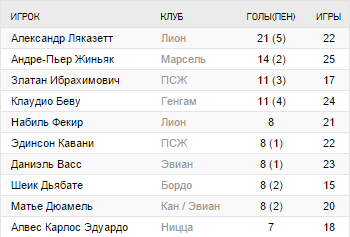 Лучшая атака: Лион (49), Марсель (46), ПСЖ(42)