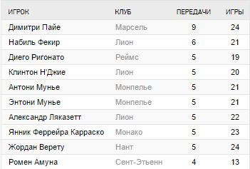 Лучшая оборона: Лион (19),Монако (19), Сент-Этьенн (19)