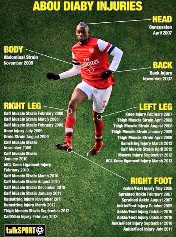 С тех пор, как Абу Диаби в последний раз появлялся на поле в официальном матче, случилось очень многое. Месси и Роналду на двоих успели наколотить 161 мяч, Жозе Моуриньо умудрился сперва выиграть Премьер-лигу, а затем попасть под увольнение, Лестер превратился из борца за выживание в главного претендента на чемпионский титул, а уже бывший клуб Диаби, лондонский Арсенал, завоевал два кубковых трофея. 508 дней простоя… неудивительно, что имя Абу Диаби стало для футбольных болельщиков синонимом слова "травма". И ладно бы дело было лишь в одном затянувшемся лечении, так нет же – до этой паузы в пятьсот с лишним дней были и другие, более короткие, но перманентные. В сумме забравшие у француза почти шесть лет его карьеры.