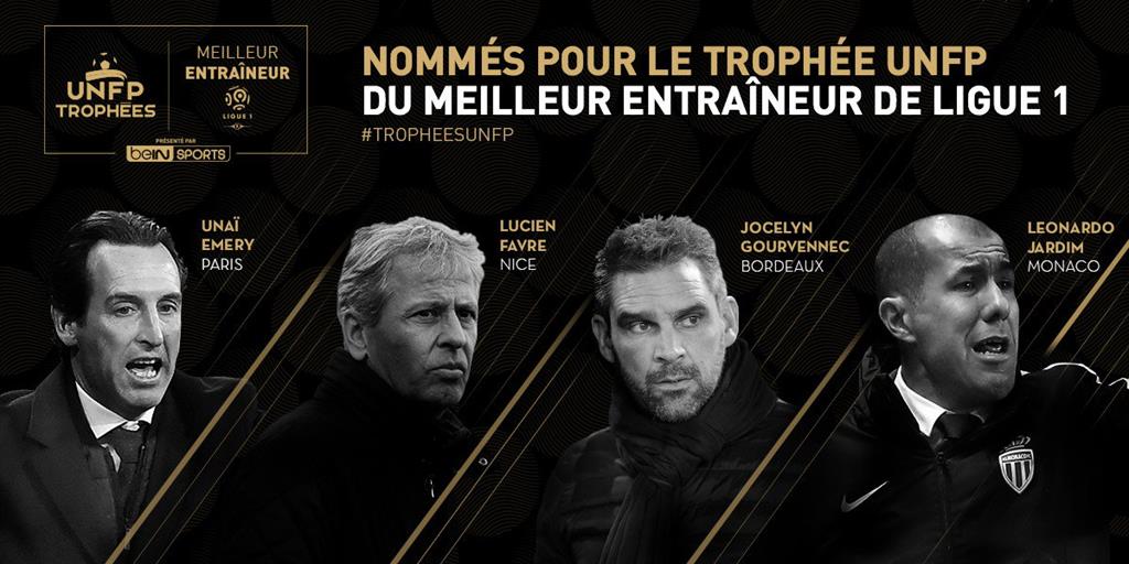 Лучшим тренером могут стать Жослен Гурвеннек (Бордо), Унаи Эмери (ПСЖ), Леонарду Жардим (Монако) и Люсьен Фавр (Ницца).