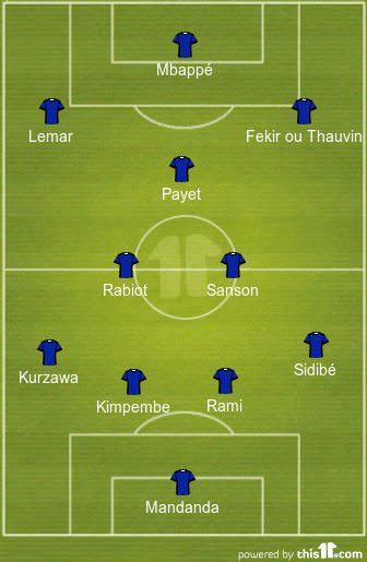 Лига 1: Манданда – Сидибе, Рами, Кимпембе, Кюрзава – Сансон, Рабио – Пайе – Фекир/Товен, Мбаппе, Лемар.