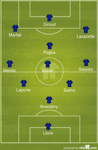 Премьер-лига: Льорис – Сахо, Косельни, Ляпорт – Сиссоко, Канте, Погба, Менди – Ляказетт, Жиру, Мартиаль.