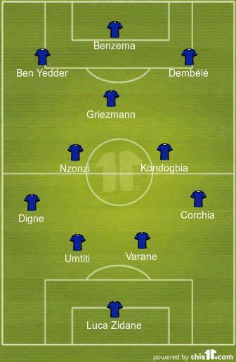 Ла Лига: Люка Зидан – Коршиа, Варан, Умтити, Динь – Кондогбия, Нзонзи – Дембеле, Гризманн, Бен-Йеддер – Бензема.