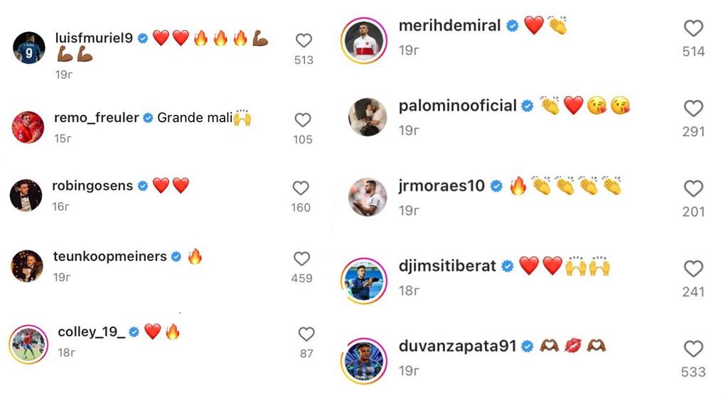 Низка футболістів Аталанти також відреагували на прощальне повідомлення Руслана.