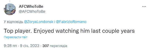 "Топовий гравець. Із задоволенням спостерігав за ним останні кілька років", — прокоментував трансфер Маліновського користувач з нікнеймом AFCWhoToBe.
