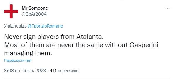 "Ніколи не підписуйте гравців з Аталанти. Більшість із них ніколи не залишаються такими, якими були під керівництвом Гасперіні", - більш скептичну думку висловив користувач з ніком Mr Someone.