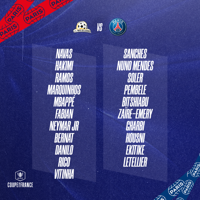 ПСЖ на своєму офіційному сайті опублікував заявку на матч 1/16 фіналу Кубка Франції, у якому парижани зіграють проти Пейс де Кассель.