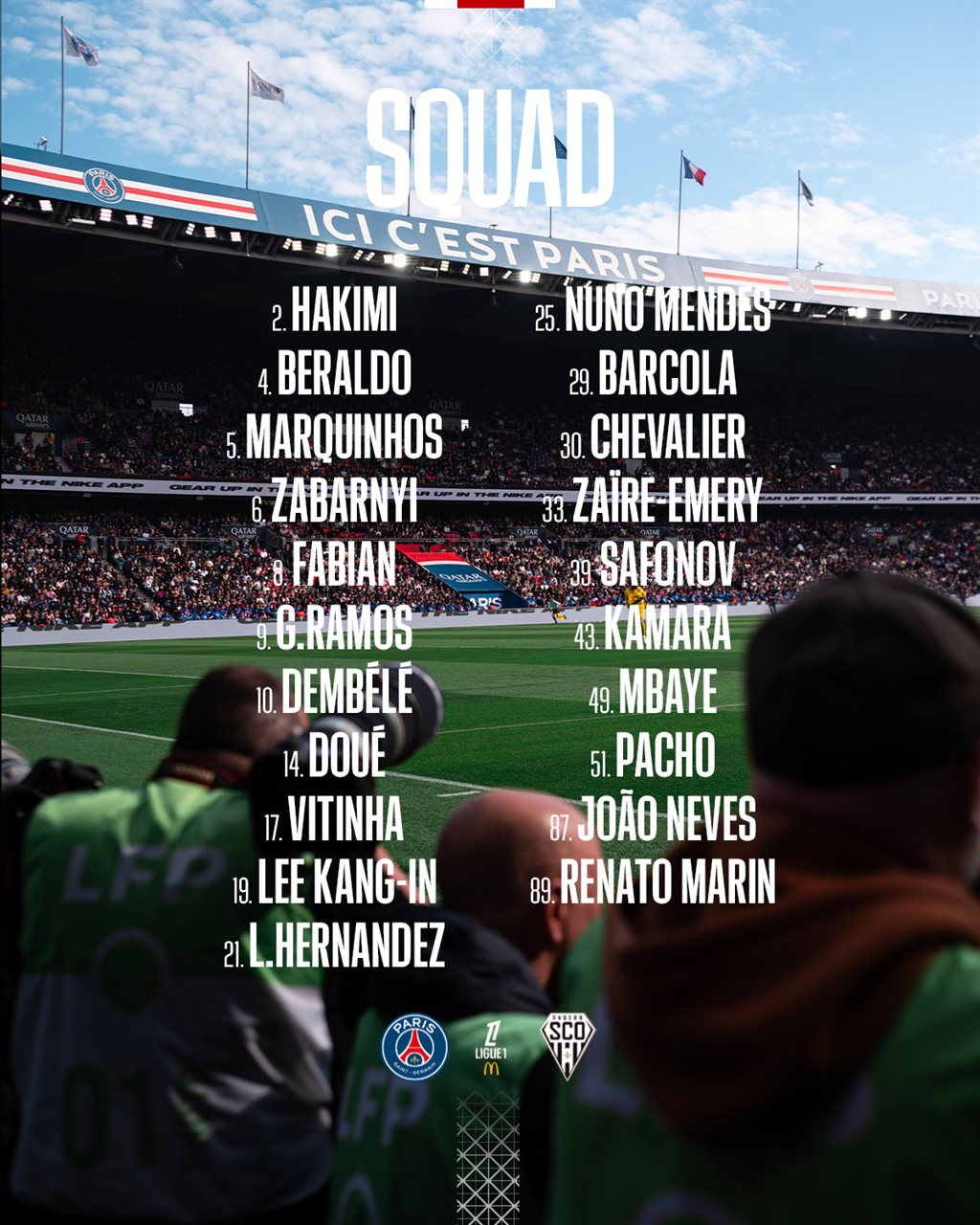 У заявку команди Луїса Енріке потрапив український захисник Ілля Забарний, який цього літа перебрався до Парижа з Борнмута.