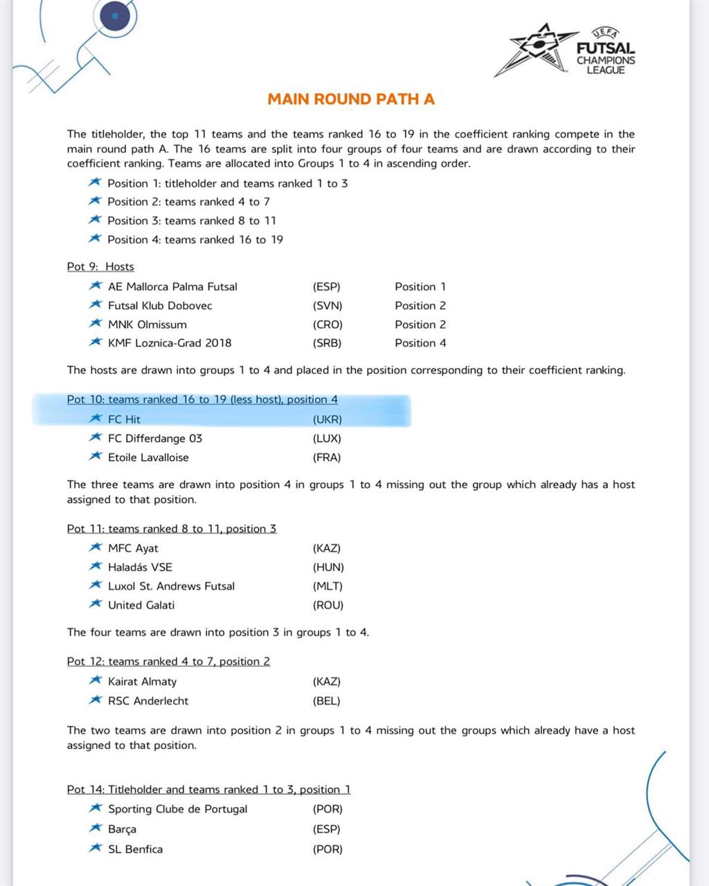 ФК ХІТ стартує у футзальній Лізі Чемпіонів сезону 2023/24 з Основного раунду, Шлях "А", повідомляється на офіційній сторінці клуба в Instagram.
