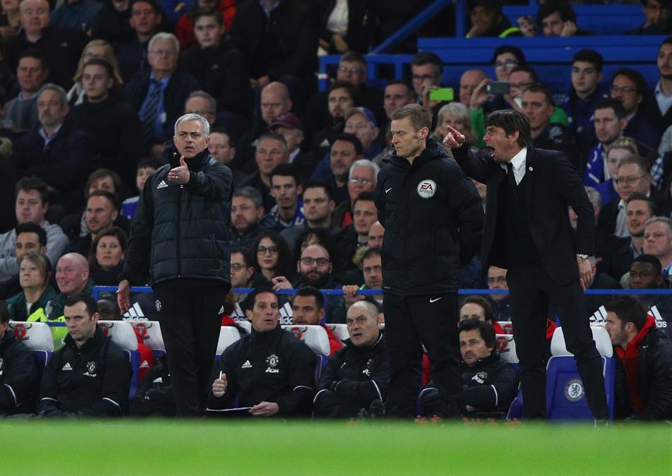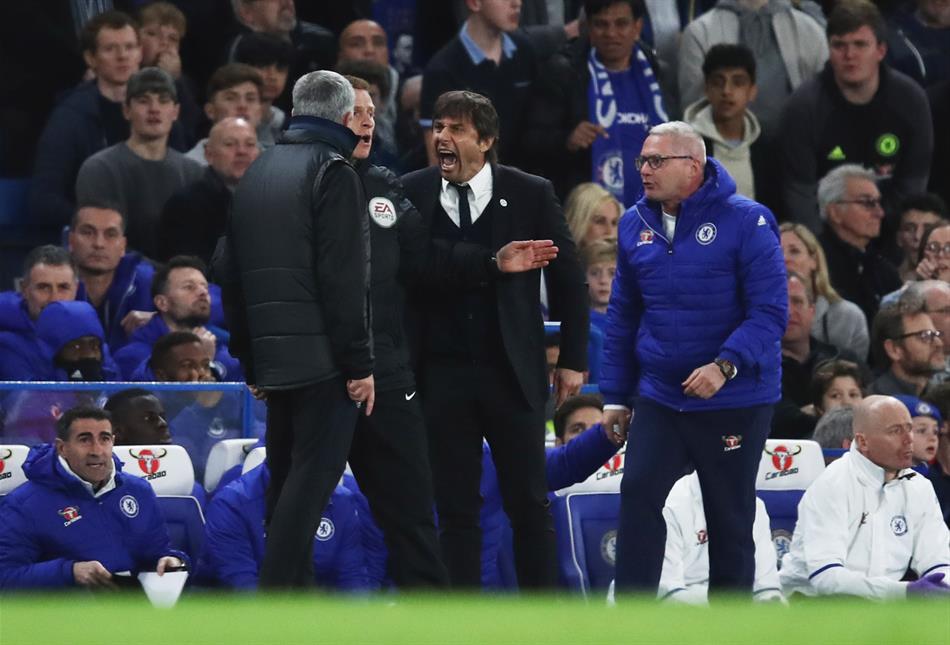 14 березня 2017 Челси - МЮ (1:0): Эмоции тренеров в матче Кубка Англии Челси выбил Манчестер Юнайтед из Кубка Англии, обыграв команду Моуриньо со счетом 1:0. Горячо было не только на поле, но и на скамейке запасных обеих команд. 1/11 Getty Images Разборки Моуриньо и Конте 2/11 Getty Images Разборки Моуриньо и Конте 3/11 Getty Images Моуриньо показывает Конте на судью 4/11 Getty Images Конте показывает Моуриньо, куда ему стоит пойти 5/11 Getty Images Моуринью кого-то застрелил 6/11 Getty Images Потом он сделал вид, что ждет автобус 7/11 Getty Images Конте начал дирижировать оркестром Челси 8/11 Getty Images Конте весь в эмоциях 9/11 Getty Images От этого шоу Моуриньо решил попить воды 10/11 Getty Images А Конте, видимо, застыл в позе 11/11 Getty Images А это уже гол! Facebook