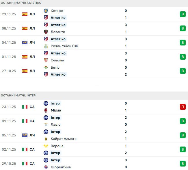 У минулому турі ЛЧ Інтер перервав вражаючу серію сухих матчів із 11 поєдинків, пропустивши від Кайрата (2:1). До цього "нерадзуррі" обіграли Юніон (4:0), Славію (3:0) та Аякс (2:0). В результаті чотири перемоги та 12 впевнених очок, які дозволяють міланцям займати комфортне третє місце серед лідерів основного етапу, що вже практично гарантує їм попадання у вісімку найкращих команд.