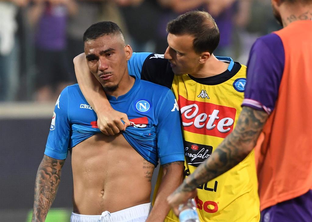 Дрису Мертенсу досталось по ногам. Бельгиец лежит на газоне и корчится от боли.