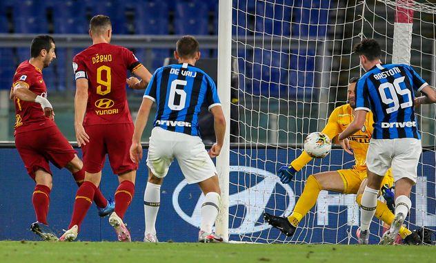ГООООООООООООООООООООООООООООЛ! Потеря мяча на левом фланге атаки обернулась для Интера контратакой соперников. Мхитарян протащил мяч к штрафной, отдал на Джеко, тот пробился мимо защитников, после чего армянин подловил удачный отскок от партнера!