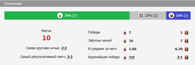 Результаты последних очных встреч