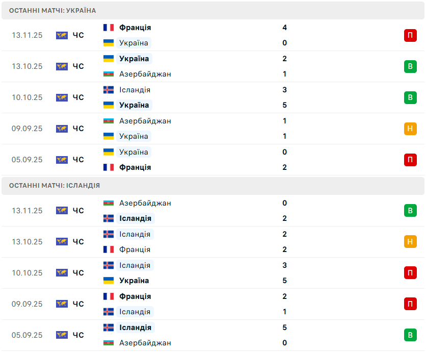 Українська національна команда пропустила по голу в кожному з 12-ти попередніх своїх матчів, тож і в поєдинку з ісландцями, які в п'яти протистояннях відбору ЧС-2026 забили стільки ж, скільки й французи (13), на "суху" звитягу розраховувати навряд чи варто.