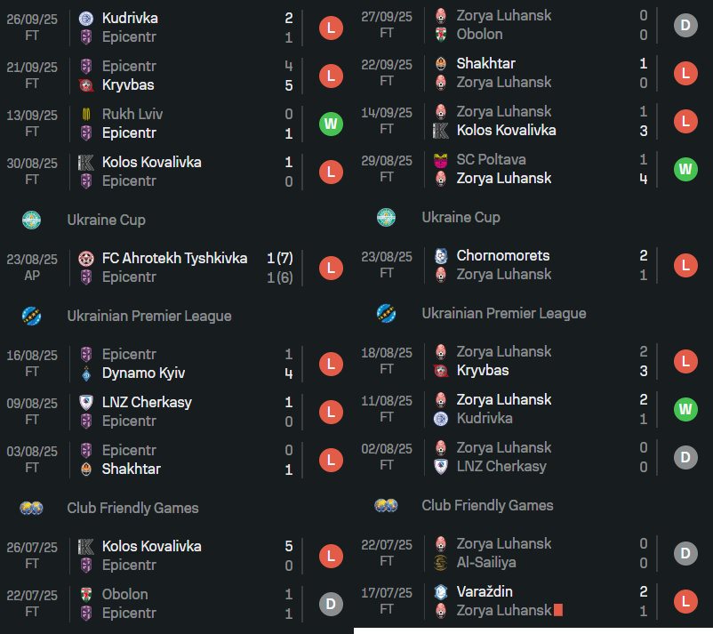 П’ятнична програма в рамках восьмого туру української Прем’єрі-ліги містила в собі всього два протистояння й завершувалось грою надвечір у Тернополі, де кам’янець-подільський Епіцентр знову привіз футбол "елітного" ґатунку на огляд місцевої публіки. Цього разу команда Сергія Нагорняка зустрічалась із луганською Зорею, і це був той випадок, коли суперники чемпіонів Першої ліги підходили до протистояння також із невдалою серією поєдинків за плечима.