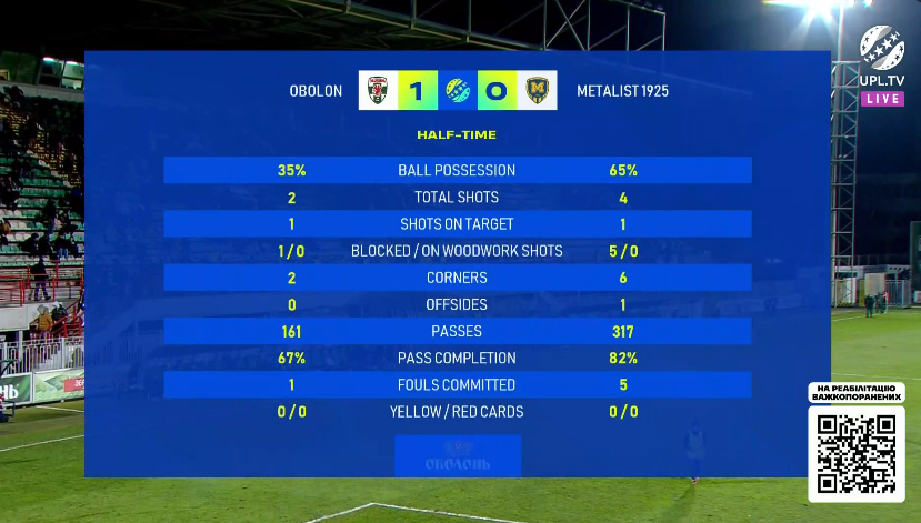 Перерва. 1:0 у нашому матчі за підсумками першої половини.