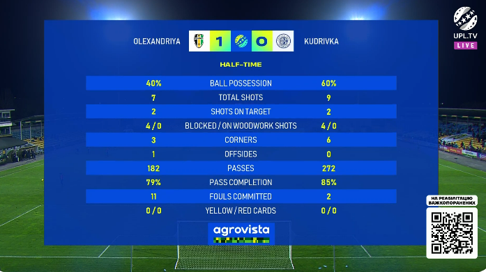 Перерва. 1:0 у нашому матчі за підсумками першої половини.