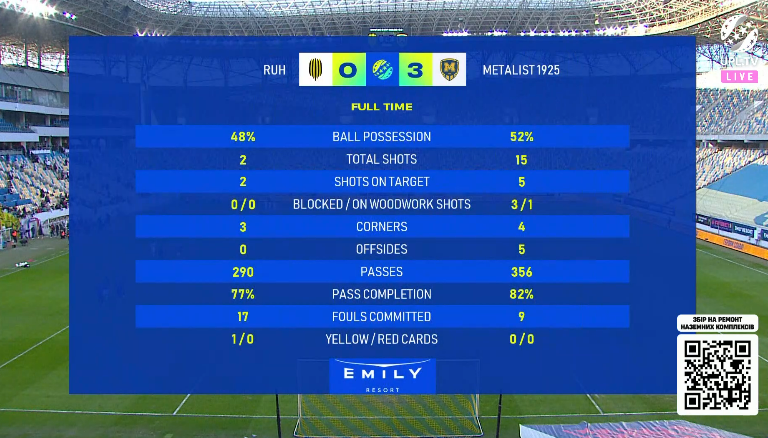 Ось і все! Матч завершено! 0:3! Рух назад.