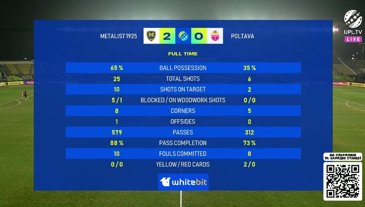 Ось і все! Матч завершено! 2:0! Упевнено й спокійно.