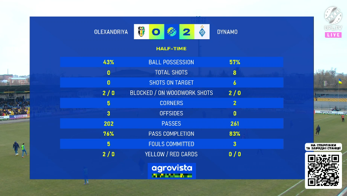Цей м’яч задав темп для решти ігрового часу першого тайму, тож Динамо й не потребувало того, щоб постійно висіти на чужих воротах та створювати додаткові гольові моменти — суперники все одно губились у роботі з м’ячем на половині поля киян, і найбільшою загрозою для воріт Нещерета радше був якийсь перегляд VAR епізодів із падіннями гравців Олександрії в чужих володіннях або ж потенційних влучань м’яча в руки під час флангових передач.