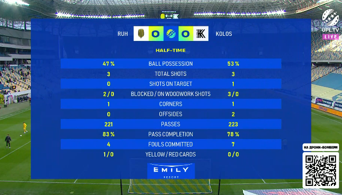 Перерва. 0:0 у нашому матчі за підсумками першої половини.