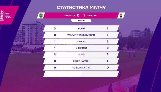 Команди пішли на перерву. 0:1 у нашому матчі після завершення першої половини.