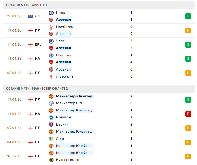 Центральний матч 23-го туру АПЛ приймає Емірейтс Стедіум, де Арсенал та Манчестер Юнайтед зійдуться в одному з найпринциповіших протистоянь англійського футболу. Лідер чемпіонату проти команди, яка щойно гучно заявила про себе в дербі Манчестера — ця дуель обіцяє не лише статус, а й серйозний турнірний підтекст.