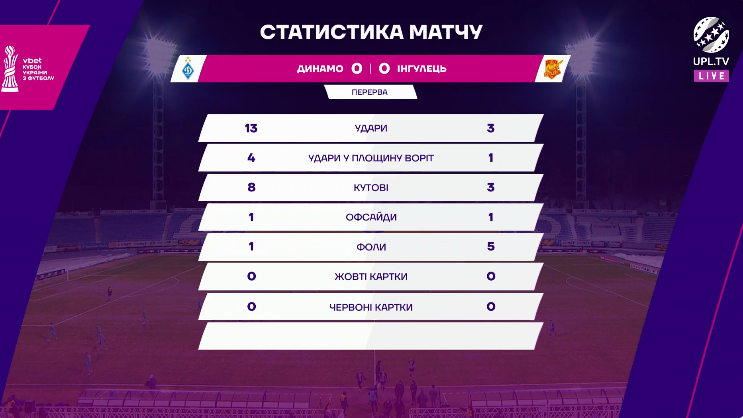 Інгулець не поспішав підставлятись під удар, а просто вантажити м’яч до чужого штрафного не давало Динамо жодної користі в атаці. Небезпеку вдавалось створити хіба що другим темпом, коли справа доходила до дальніх ударів, але воротар Жилкін або рятував ситуацію на лінії, або гравці команди Костюка не влучали в площину. А ще були традиційно небезпечні стандарти від "біло-синіх", під час одного з яких випадковий рикошет після удару Попова головою міг би й перетворитись на гол, якби не той-таки голкіпер Інгульця.
