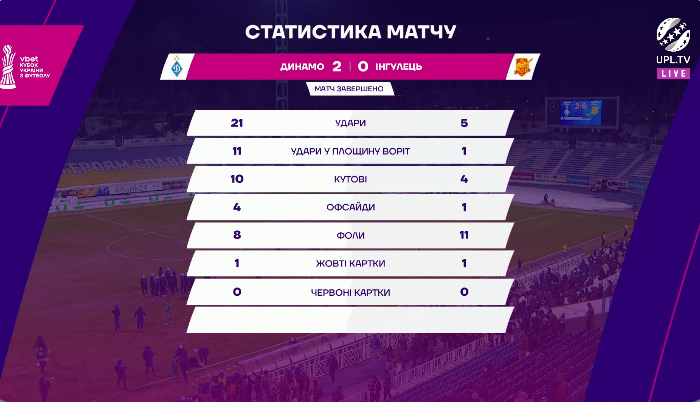 Фінальний свисток головного арбітра Олександра Шандора зі Львова відправив київське Динамо до півфіналу Кубка України, тоді як для петровського Інгульця виступи в цьому розіграші турніру добігли до завершення.