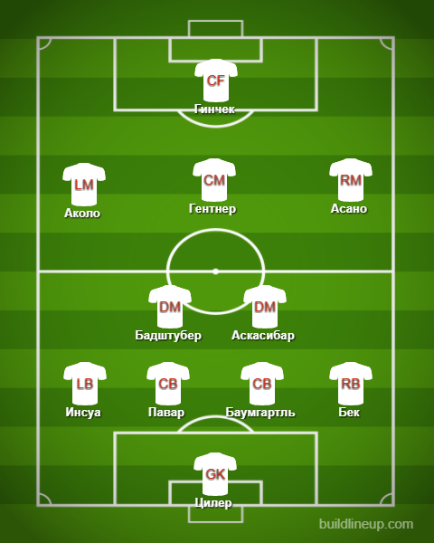 Штутгарт: Цилер — Баумгартль, Бадштубер, Павар — Бек, Аскасибар, Гентнер, Инсуа — Аколо (Брекало, 46), Озкан (Аого, 85) — Гинчек (Асано, 45+1)