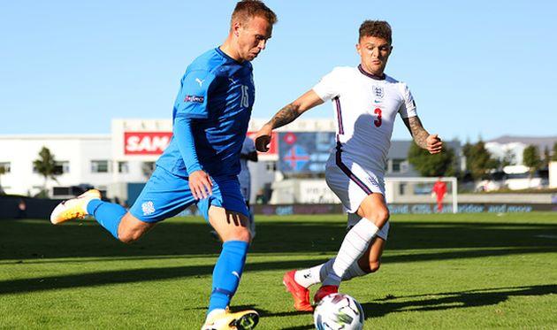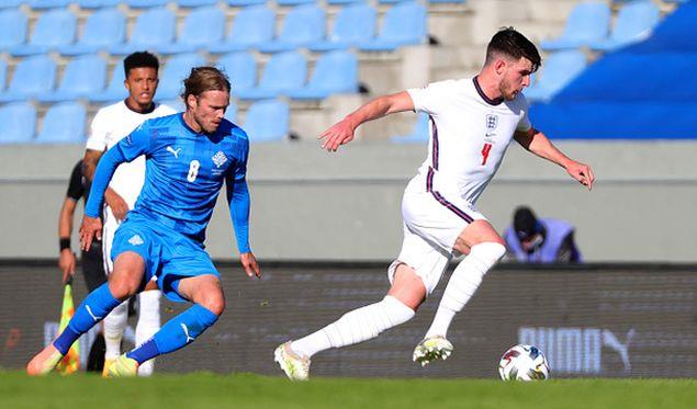 Англичане много владеют мячом на первых минутах матча, но пока не продвигаются к воротам Халльдоурссона.