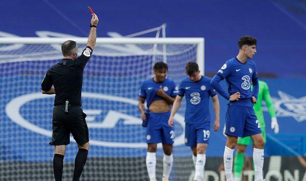 УДАЛЕНИЕ! После просмотра видеоповторов Кристенсен получил красную карточку за фол последней надежды.