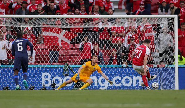 Дания: Шмайхель — Васс, Кьер, Кристенсен, Мехле — Эриксен, Хойбьерг, Дилейни — Поульсен, Брайтвейт, Винн.