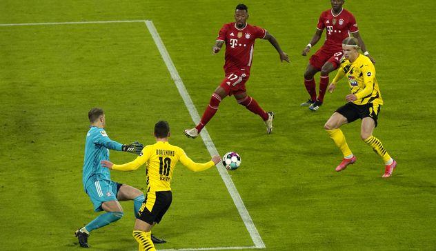 В итоге, регулярные заходы в чужие владения в конце первого тайма обернулись для Боруссии пенальти в ее ворота. Комана в правом фланге штрафной сбил Дауд, после чего Левандовски оформил дубль привычным для него исполнением пенальти в левый нижний угол.